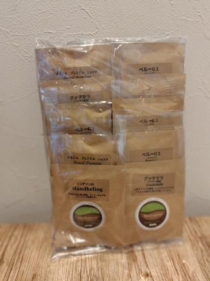 ドリップパックは、お湯を注ぐだけで本格的なコーヒーが楽しめる便利なアイテムです。当店では、自家焙煎した新鮮なコーヒー豆を1つ1つ丁寧にパックにしました。豆の種類は、ブラジル、コロンビア、またはビーンズブレンド(1500円迄の豆)からお選びいただけます。複数の銘柄を楽しみたい方は、銘柄ごとに分けてご注文ください。